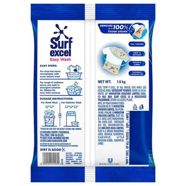 Surf Excel Easy Wash Detergent Powder 1.5 kg - Effortless Cleaning, Every Time!